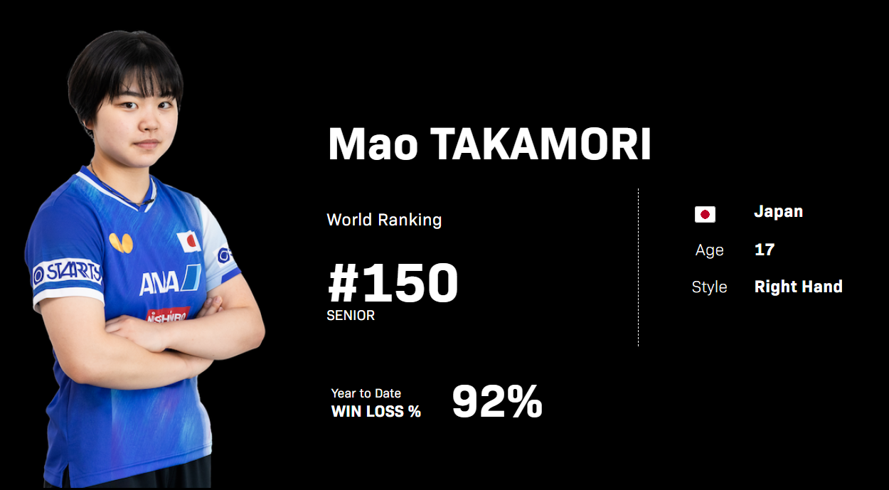 17岁的高森爱央身高只有1.6米,她自2024年已经和大藤沙月、面手凛等日乒一队/二队的选手搭档过女双,很明显日乒教练组已经开始培养她作为日乒女队的后备力量,她在U19女单的排名也已经高居世界第二。