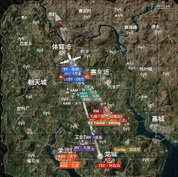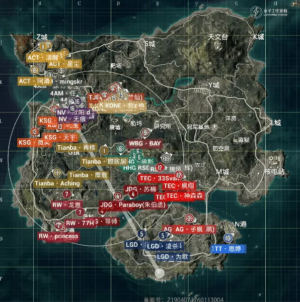 决胜时刻,信号圈缩在G镇附近,圈内剩余杭州LGD战队、广州TT战队和福州NV战队,此时场上1v4v4。NV战队先被TT战队淘汰出局,随后剩余两队展开对战,TT战队远点出枪淘汰LGD战队最后一人拿下比赛,TT获得本场比赛胜利。